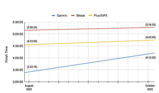 Back in July, my Strava marathon prediction sat at 5:22:24.